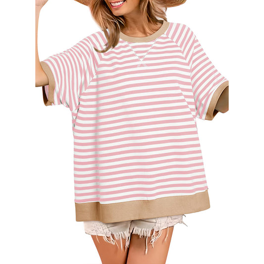 Women's Oversized T-Shirt Striped Color Block Summer Tops